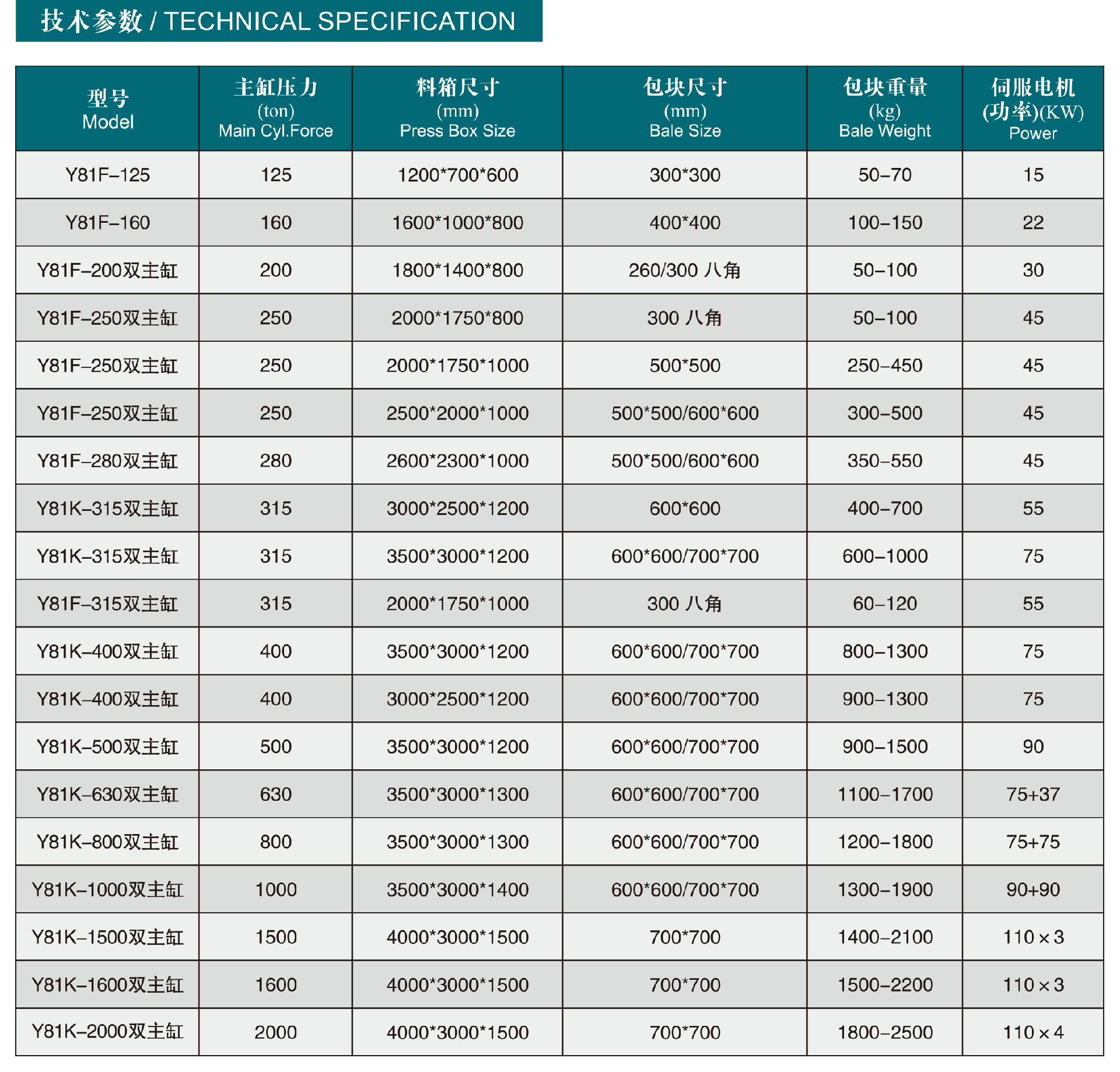 描述: 用途 Y81系列金屬液壓打包機可將各種金屬廢邊料(鋼刨花、廢鋼、廢鋁、廢銅、廢不銹鋼以及報廢汽車廢料等)擠壓成長方體、八角形體,圓柱體等各種形狀的合格爐料。既可降低運輸和冶煉成本,又可提高投爐速度。該系列打包機主要適用于鋼廠、回收加工行業(yè)及有色、黑色金屬冶煉行業(yè)。 特點 1、所有機型均采用液壓驅(qū)動,可選擇手動或PLC自動控制操作。 2、出料形式有翻包、推包(側(cè)推和前推)或人工取包(扛包)等不同方式。 3、安裝無需底腳螺絲,在無電源的地方,可采用柴油機作動力。 4、擠壓力從63噸至1500噸有十幾個等級,生···